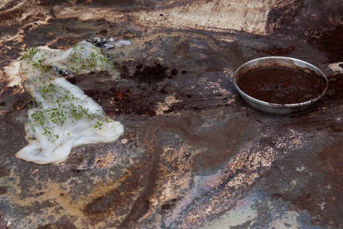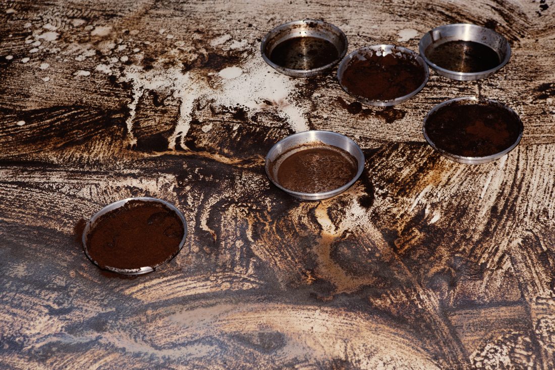 At the Kunsthaus Hamburg, Melika Kara translates her personal engagement with these issues into a large-scale installation. Visitors enter a garden in which the past, impermanence and new beginnings merge. A photographic archive is burned to ash and integrated into the installation. Paintings are incorporated into the floor and walls, and the space is strewn with images made with coffee grounds. In some places, plants can be found growing. Water streams from the walls, flows over paintings and collects in pools or small puddles, sometimes clear, sometimes cloudy. Thus emerges a fragile, living landscape, one that simultaneously tells a story of loss and of the possibility of a new beginning. Amidst fire and water, remembrance and dissolution, Melike Kara invites visitors to question their own conceptions of identity and to seek out the shared experiences that transcend cultural specificity. In the process, the installation creates a space that not only speaks of individual memory but also asks what forms of togetherness become possible when identity is understood as something in motion – towards an open experience of presence.
