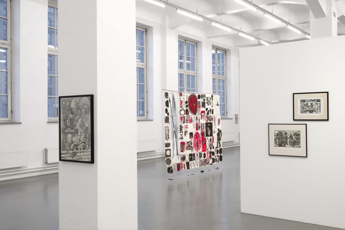 Bild 3: Installationsansicht: Systemfehler Mensch? – Jahresausstellung des Berufsverbands bildender Künstler*innen Hamburg, Kunsthaus Hamburg 2026, Foto: Antje Sauer; Für das Werk von Katharina Holstein-Sturm © VG Bild-Kunst, Bonn 2026